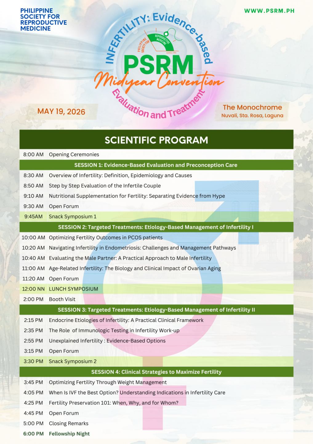 Join the Philippine Society for Reproductive Medicine for the Midyear Convention on “Infertility: Evidence-Based Evaluation and Treatment.”